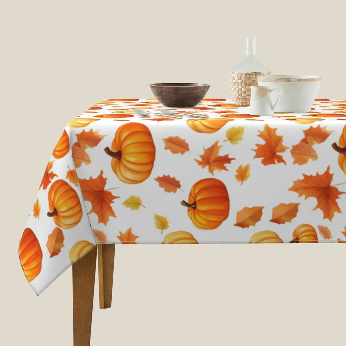 Introduisez la chaleur de l'automne dans votre maison avec notre nappe carrée style automnal avec motif citrouille. Confectionnée en polyester robuste, cette nappe carrée arbore des motifs de citrouilles et de feuilles dans des tons orange, capturant l'essence de la saison.