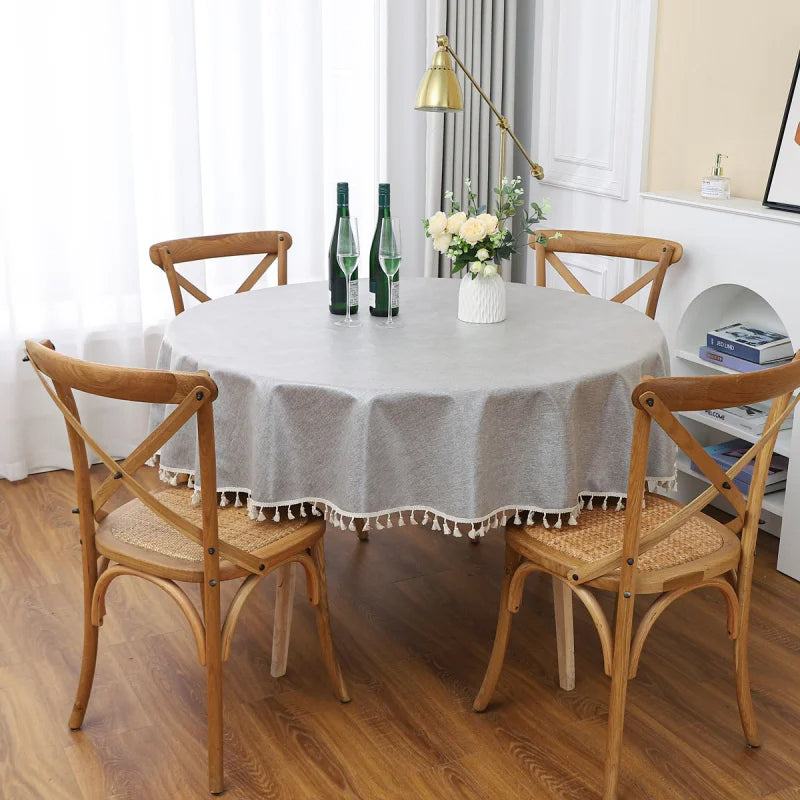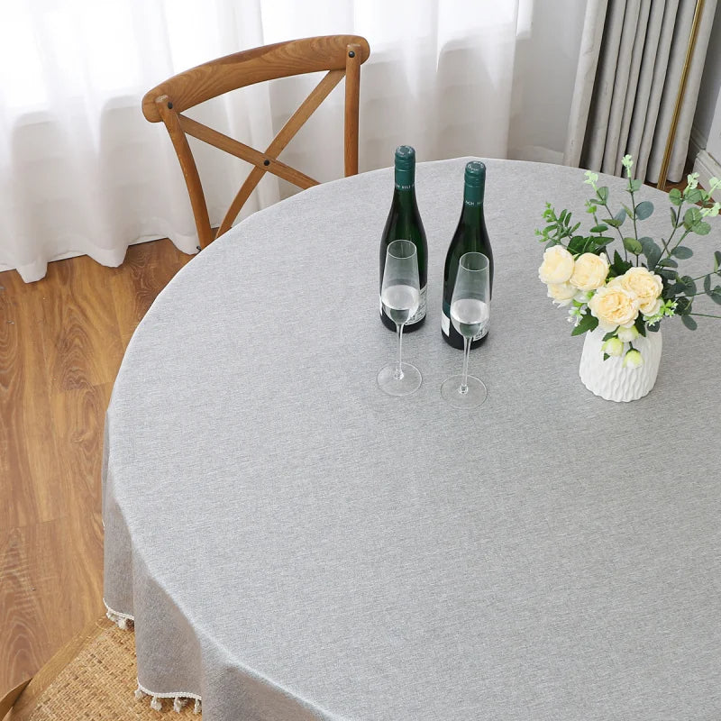 Apportez un cachet unique à votre salle à manger avec la nappe de table grise et ronde avec macramé. Cette nappe grise mêle habilement l'artisanat traditionnel au design contemporain, avec son élégante finition en macramé réalisée à la main. Le gris fait ressortir les détails délicats du macramé.