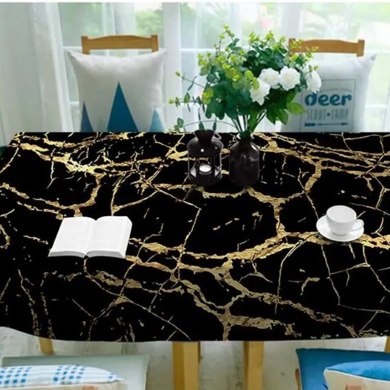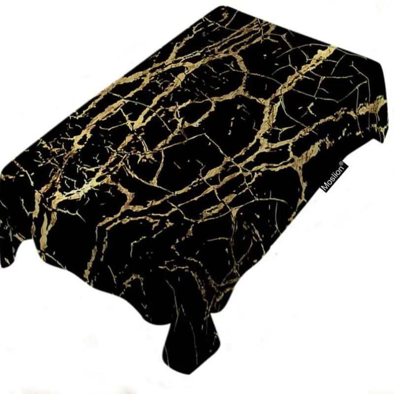 Notre nappe noire rectangulaire arbore un design sophistiqué avec un effet marbre qui apporte une touche d'élégance contemporaine à toute salle à manger. Fabriquée à partir d'un mélange de polyester et de coton, cette nappe noire combine durabilité avec un style distinctif.