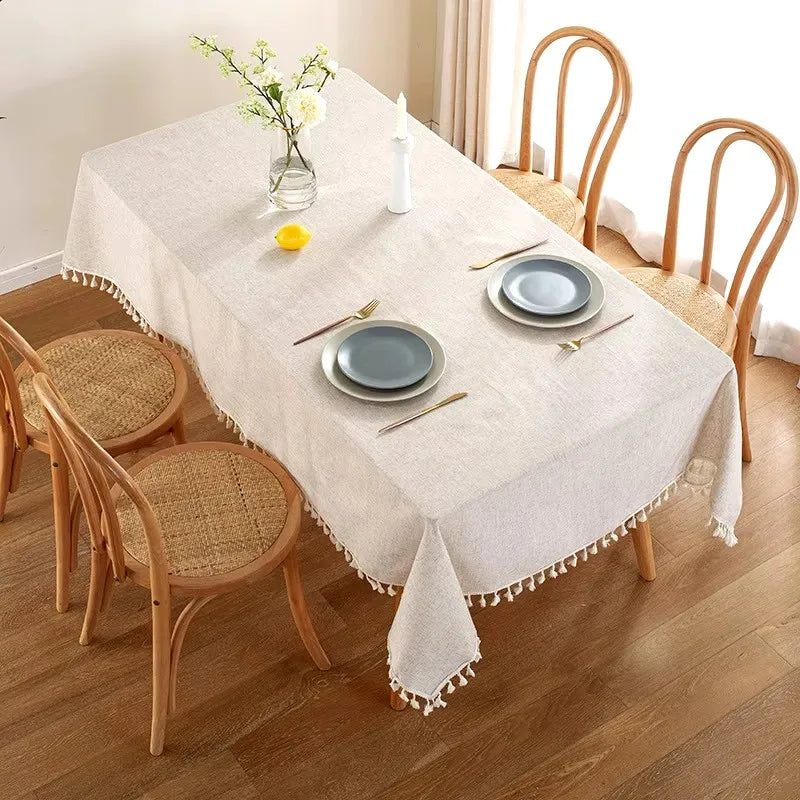 Cette élégante nappe de table rectangulaire en lin blanc est le choix parfait pour ajouter une touche de raffinement à votre salle à manger. Ornée de pampilles délicates sur les bords, cette nappe rectangulaire marie beauté naturelle et chic discret, idéale pour les occasions spéciales ou pour embellir le quotidien.