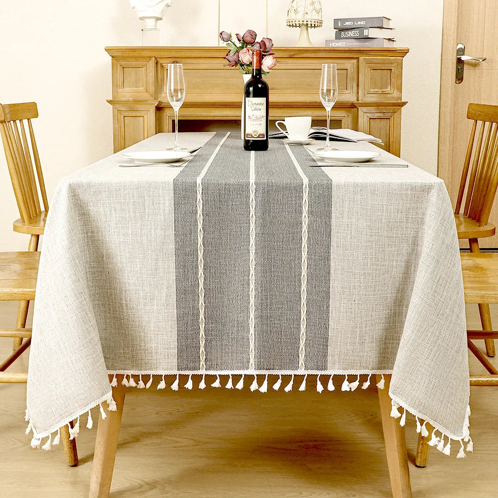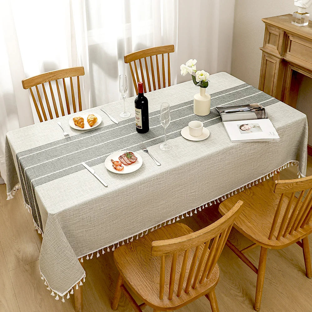Cette nappe de table rectangulaire rétro à rayures, disponible en couleurs grise ou marron, combine coton et polyester pour une durabilité accrue. Ornée de pampilles, cette nappe rectangulaire apporte une touche d'élégance nostalgique à votre décor, parfaite pour ajouter du caractère à votre salle à manger avec son style distinctif.