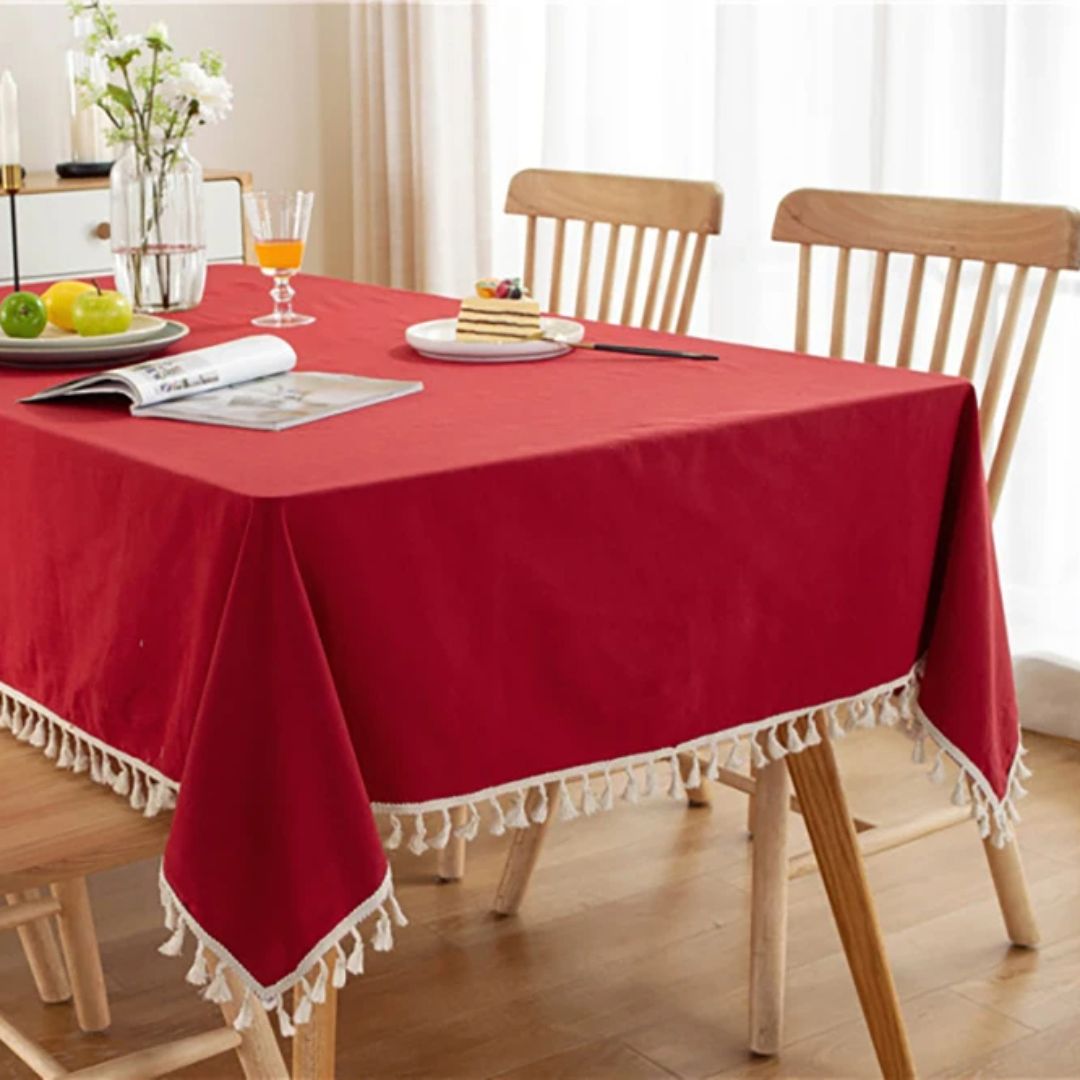 Cette nappe rectangulaire rouge en coton embellira votre table avec son élégance intemporelle et ses pampilles délicates. Confectionnée pour résister à l'usage quotidien tout en conservant son allure raffinée, cette nappe rouge se drape magnifiquement, ajoutant une touche de sophistication à votre espace repas.