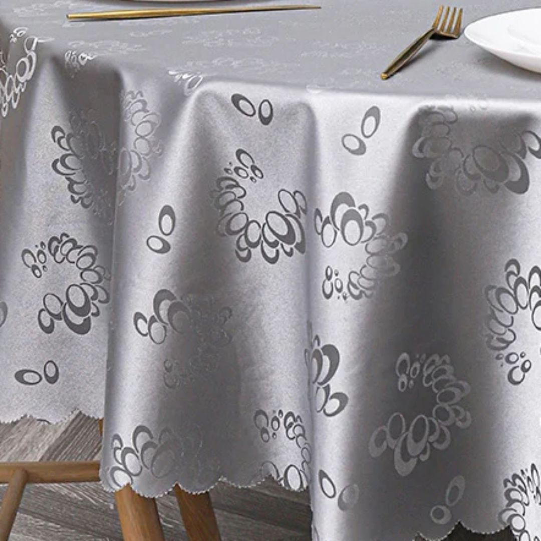 Cette nappe de table ronde en toile cirée de couleur argentée combine fonctionnalité et style moderne. Sa surface brillante et sa teinte métallique apportent une touche d'élégance contemporaine à votre salle à manger, tout en offrant une facilité de nettoyage exceptionnelle. Cette nappe ronde est parfaite pour les repas quotidiens.