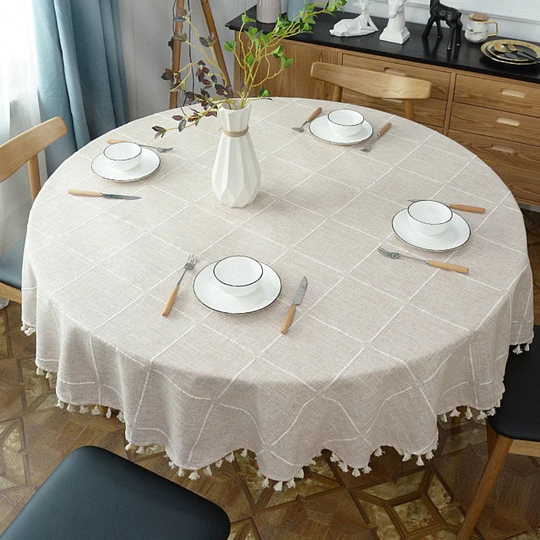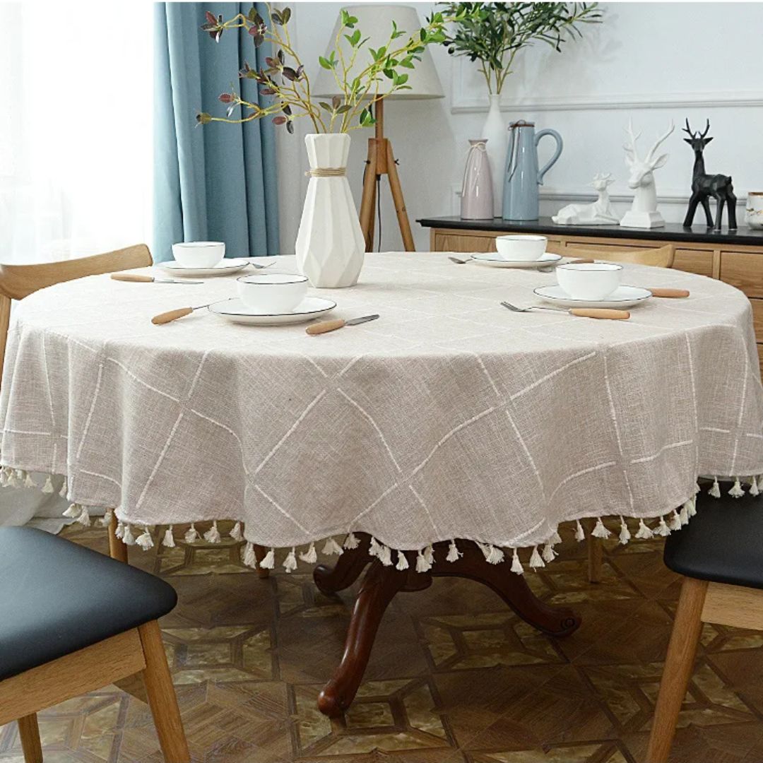 Cette nappe de table ronde, couleur beige, en coton et polyester apporte une touche rétro à toute salle à manger. Son motif à grands carreaux se marie parfaitement avec un décor classique ou contemporain, tout en ajoutant une élégance intemporelle. Facile à entretenir, cette nappe ronde allie fonctionnalité et style.