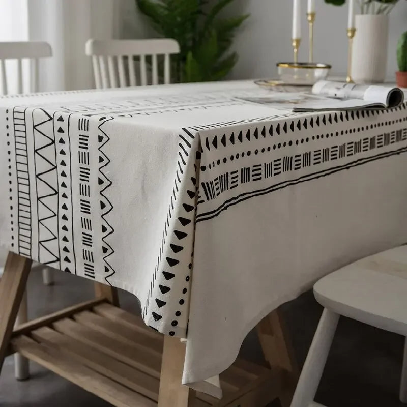 Apportez une touche de sophistication à votre salle à manger avec cette nappe en lin rectangulaire imprimé motif géométrique. Grâce à son imprimé motif géométrique, cette nappe en lin allie parfaitement modernité et élégance. Idéal pour une table contemporaine, elle offre une esthétique sobre et captivante.