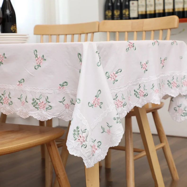 Nappe Rectangulaire en Coton avec Motif Floral, Décoration de Table Élégante pour Salle à Manger