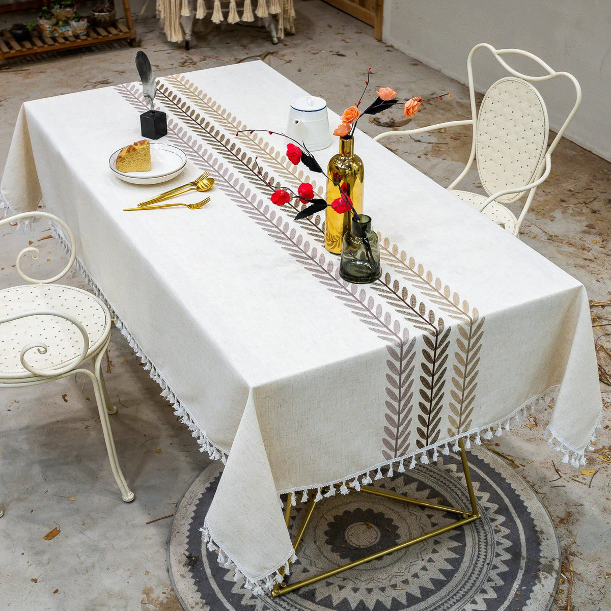 Notre nappe coton rectangulaire avec motif floral marie parfaitement élégance et fonctionnalité. Fabriquée dans un mélange de coton et polyester, cette nappe coton blanche est agrémentée de délicats motifs floraux, apportant une touche de raffinement à votre table. L'effet dentelle sur les contours ajoute une dimension de sophistication.