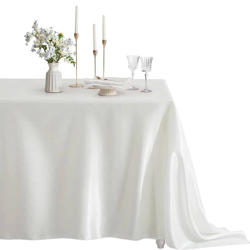 Transformez votre table en véritable centre de table avec cette nappe rectangulaire en satin, au fini lisse et brillant. Son tissu fluide capte la lumière avec délicatesse pour sublimer votre décoration en toute occasion : mariage, anniversaire, réception ou dîner raffiné à la maison.