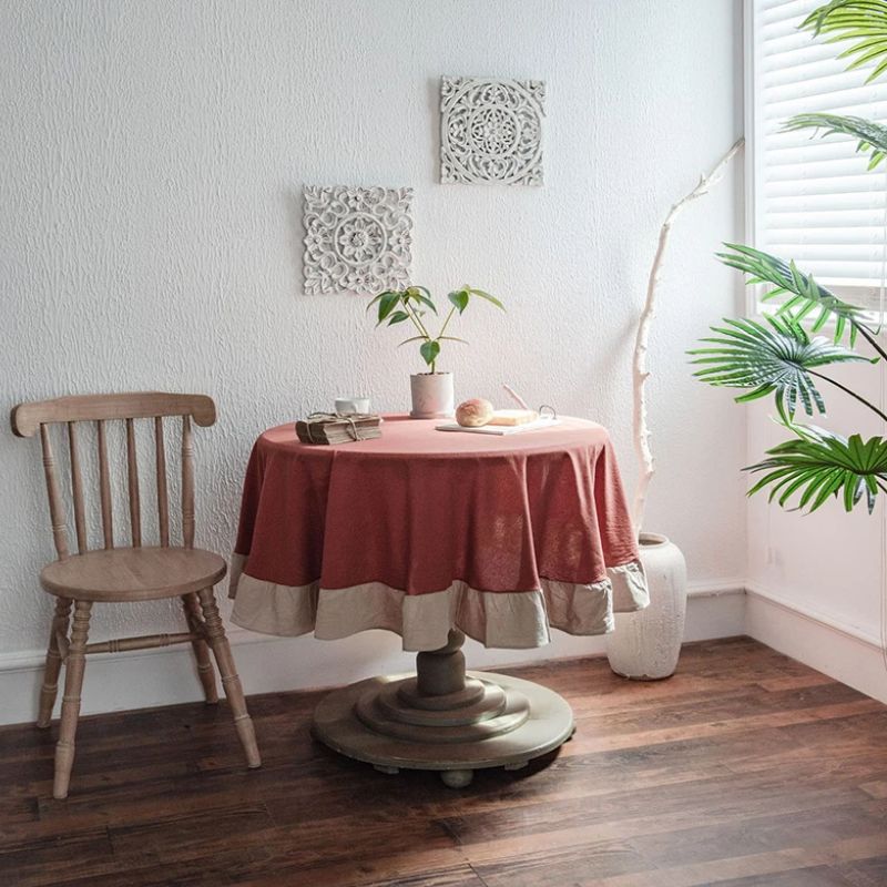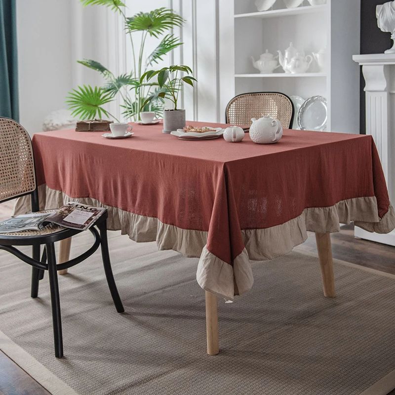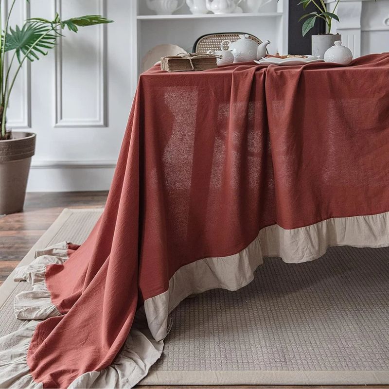 Apportez une touche chaleureuse et élégante à votre intérieur avec cette nappe rouge brique à volants, idéale pour habiller une table de salle à manger, de cuisine ou de salon. Son design décoratif et sa finition à volants offrent un style tendance adapté aussi bien au quotidien qu’aux occasions spéciales.