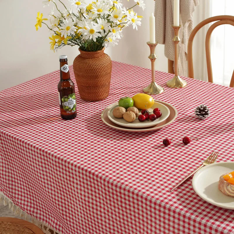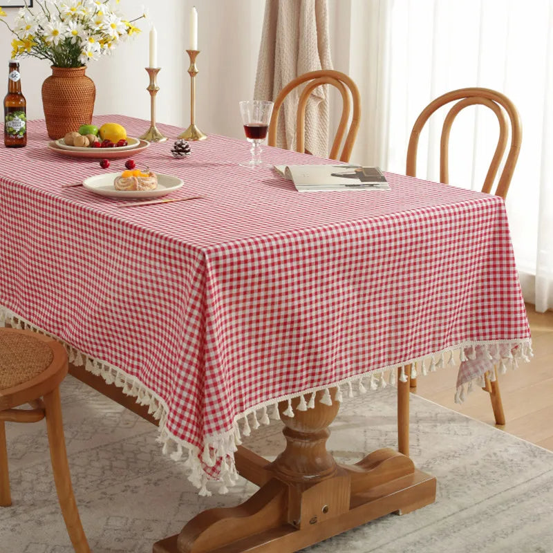 Ajoutez une touche de charme rétro à votre salle à manger avec cette nappe rose à carreaux, confectionnée en coton de haute qualité. Le design de cette nappe rose est rehaussé de pampilles élégantes qui dansent à chaque mouvement, créant une ambiance accueillante et chaleureuse.