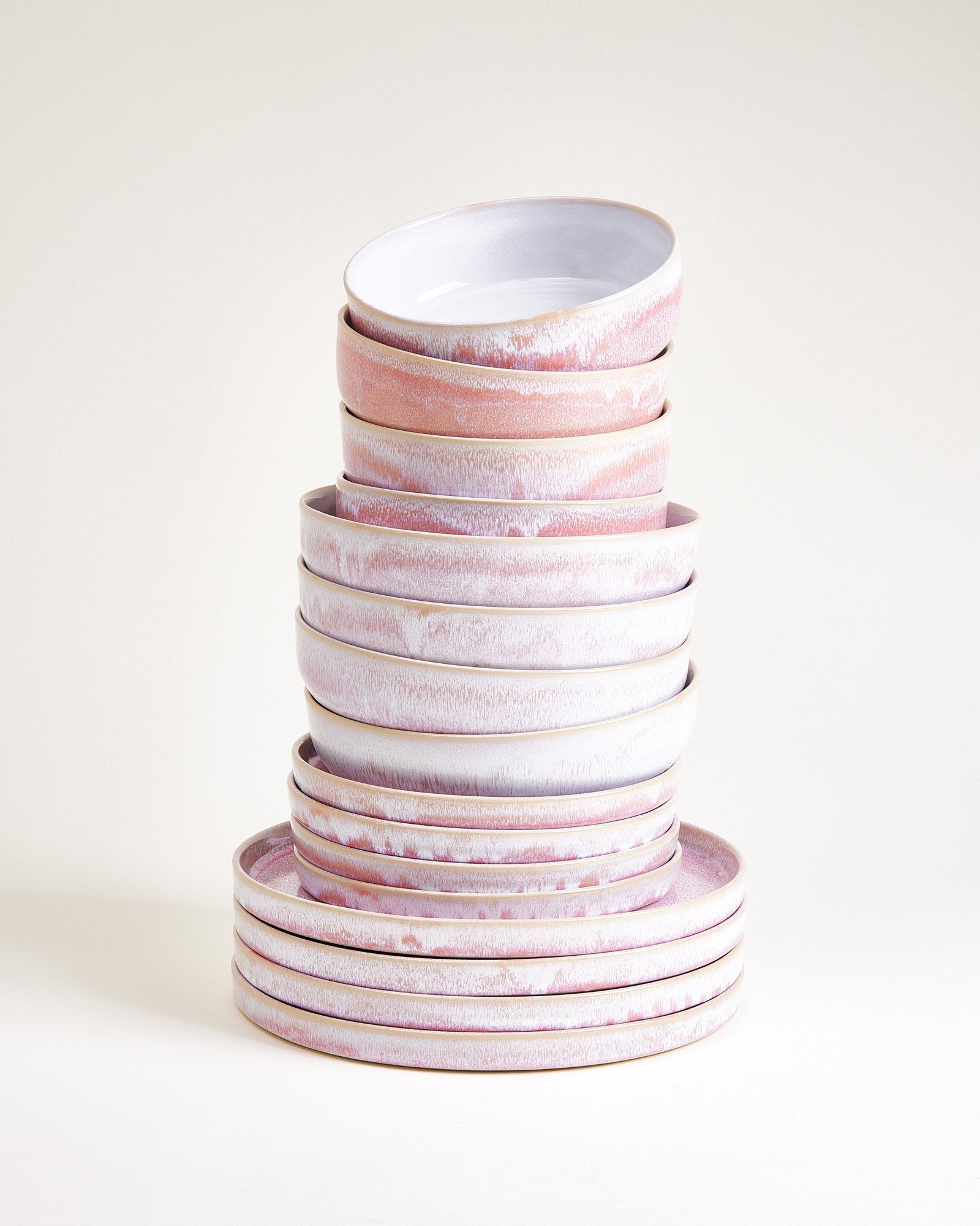 Service de Vaisselle en Grès 16 Pièces – Finition Mate Rosée, Fait Main