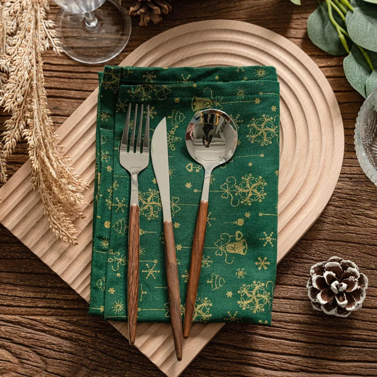 Lot de 4 serviettes de table vertes en coton avec motifs de Noël
