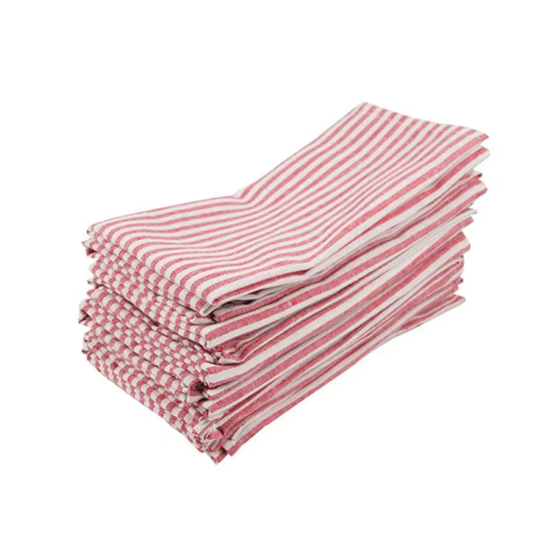 La serviette de table présente ici une allure pleine de rythme visuel, avec des lignes graphiques qui structurent le textile d’une manière claire et expressive. Le lot de 12 serviettes de table à rayures incarne une esthétique rétro revisitée, avec une ligne décorative intemporelle qui rappelle les tablées familiales traditionnelles.
