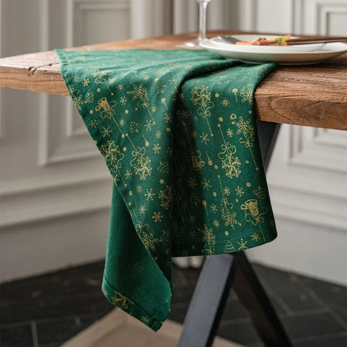 Ce lot de quatre serviettes de table en coton vert est décoré de motifs de Noël qui apportent une touche festive à votre décoration de table. Leur texture douce et leur finition soignée s’intègrent facilement aux repas de saison. Conçues en coton pur, elles offrent une utilisation pratique pour accompagner vos moments partagés durant les fêtes.