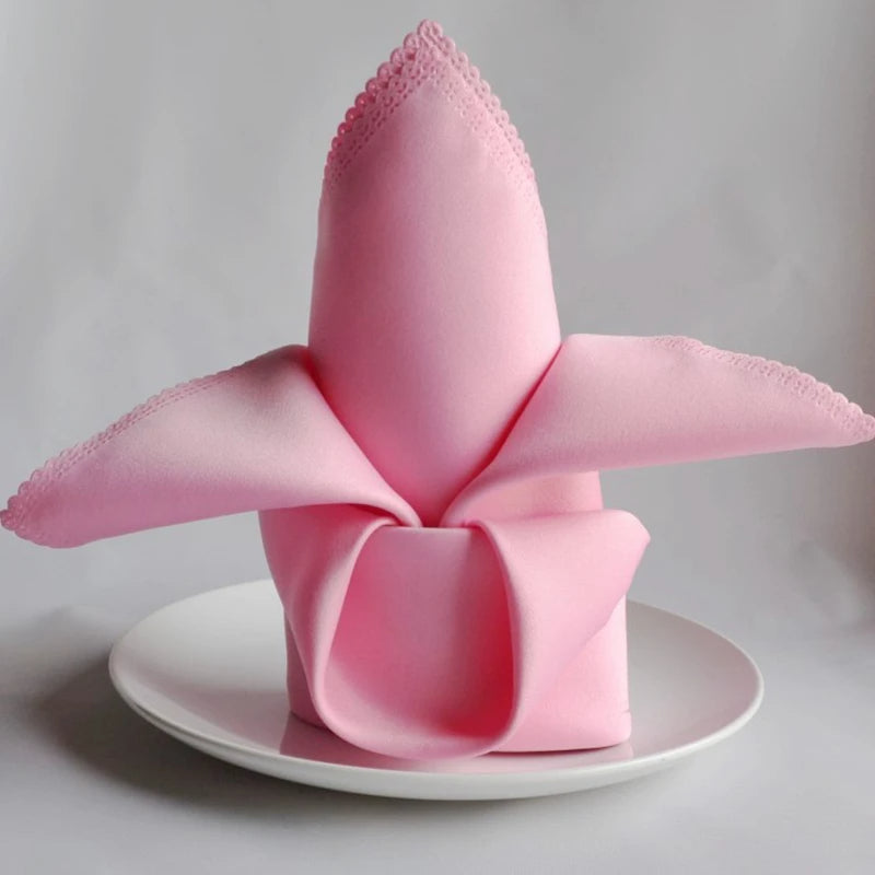 Cette serviette de table en polyester rose présente un design moderne souligné par des bordures arrondies. Sa texture douce et sa finition soignée s’intègrent facilement à différents styles de décoration. Pratique au quotidien comme pour des repas plus soignés, elle apporte une touche simple et élégante à votre table.